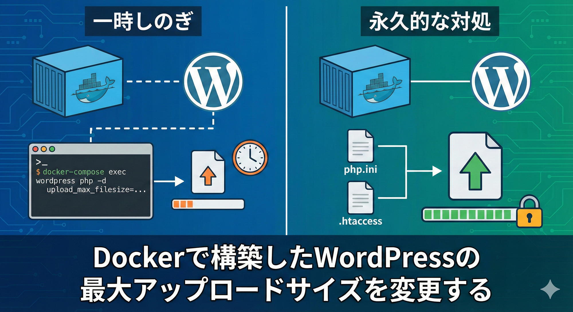 • Dockerで構築したWordPressの最大アップロードサイズを変更する。一時しのぎと永久的な対処を紹介