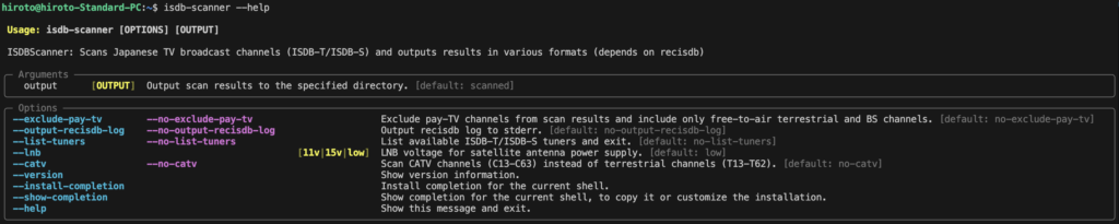 sudo chmod +x /usr/local/bin/isdb-scanner使い方